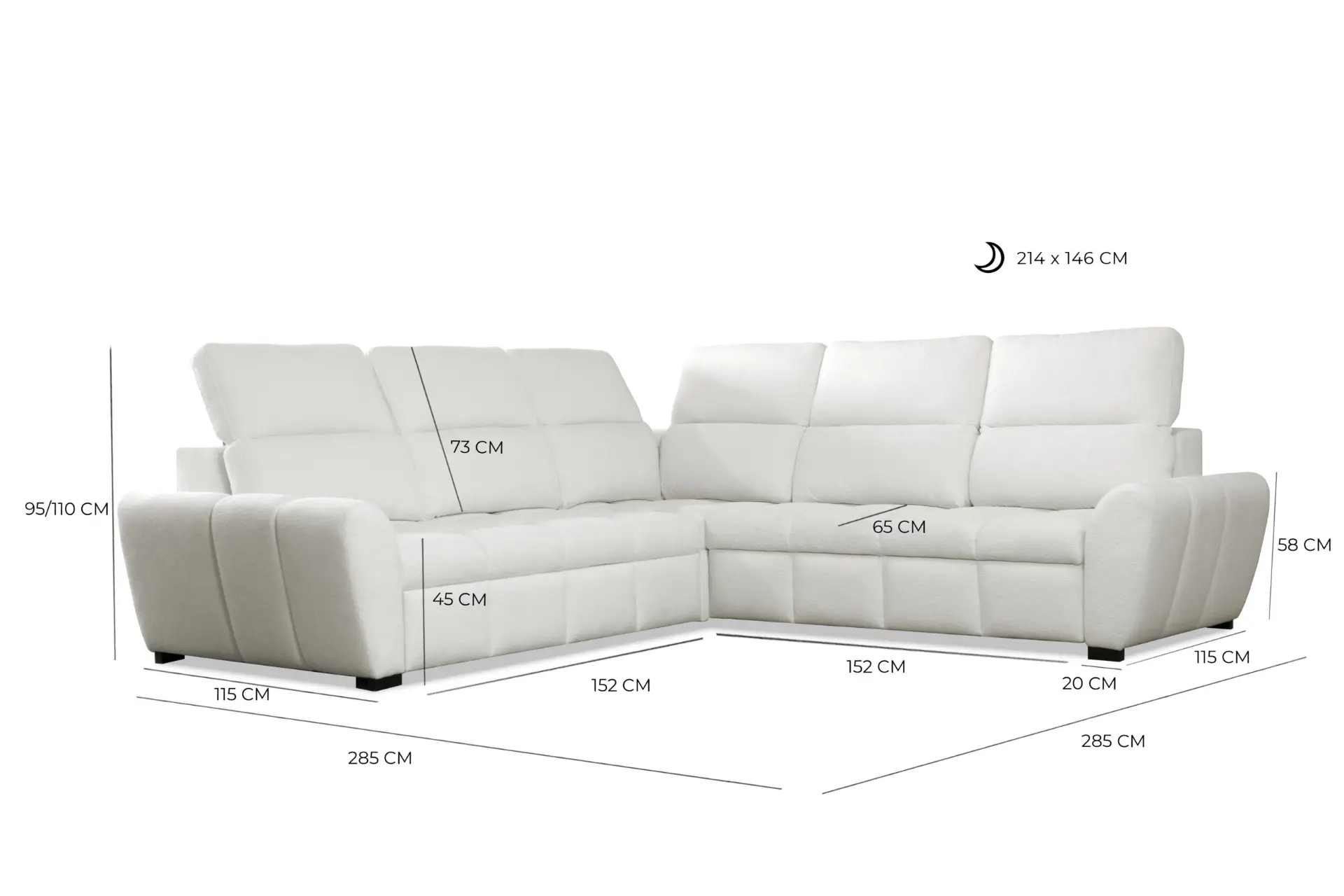 - Rozměry: 285 cm x 285 cm (celkem) / 45 cm x 95/110 cm (výška sedáku x výška opěradla)